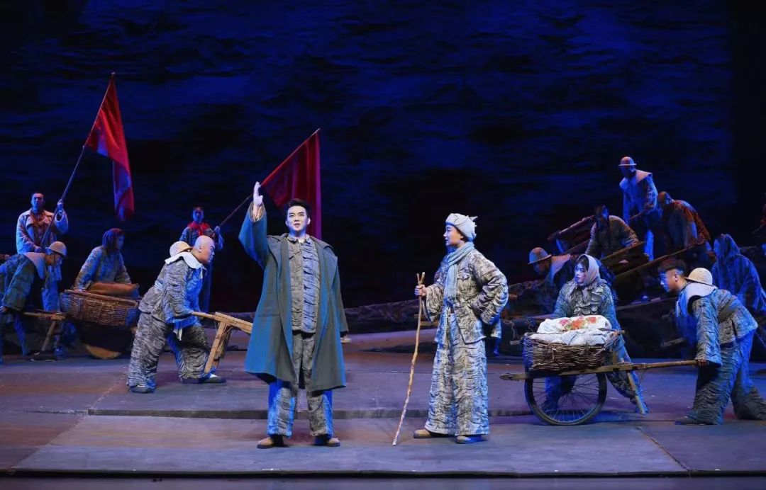 話劇《紅旗渠》以恢弘的氣勢(shì)和全景式的敘述方式,講述了縣委書記楊貴帶領(lǐng)林縣人民,歷時(shí)10年在太行山懸崖峭壁上修建紅旗渠的艱辛歷程。話劇從鄉(xiāng)村動(dòng)員的視角展開,既體現(xiàn)了民風(fēng)、民情,又讓人看到純樸的太行山人民舍小家為大家的情懷,描繪了一幅林縣人民在黨的領(lǐng)導(dǎo)下“重新安排林縣河山”的藝術(shù)畫卷,詮釋了在修建紅旗渠過程中形成的“自力更生、艱苦創(chuàng)業(yè)、團(tuán)結(jié)協(xié)作、無私奉獻(xiàn)”的紅旗渠精神。臺(tái)上演員全情投入、忘我表演,劇場(chǎng)內(nèi)不時(shí)掌聲雷動(dòng)。該劇本創(chuàng)作至搬上舞臺(tái)歷時(shí)四年,期間得到了省委組織部、省委宣傳部、省文化和旅游廳的高度關(guān)注。