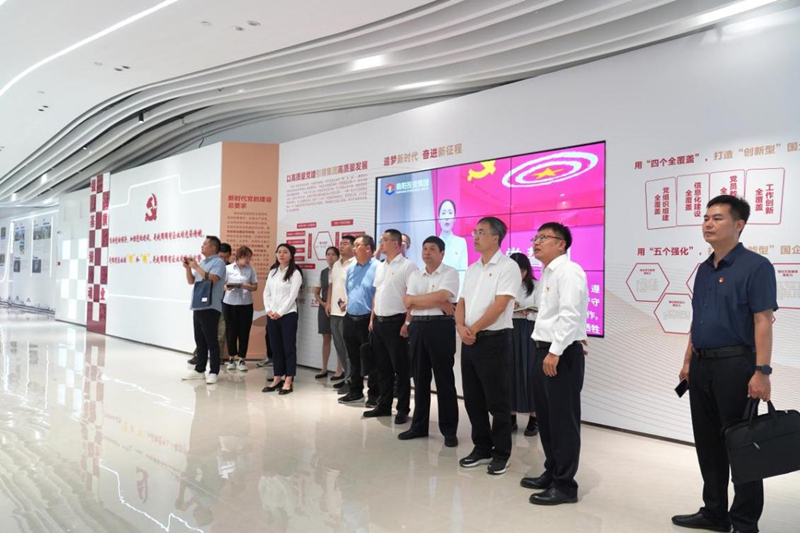 法玉偉一行先后參觀了集團(tuán)企業(yè)宣傳大廳、機(jī)關(guān)黨員活動(dòng)室、城投控股黨員活動(dòng)室等。集團(tuán)辦公室主任孔德真詳細(xì)介紹了集團(tuán)黨建氛圍營(yíng)造和黨建工作情況,并表示,南陽(yáng)投資集團(tuán)按照“1+6+N”黨建工作格局,用好“六個(gè)一”學(xué)習(xí)制度與“線上線下”載體平臺(tái)這“兩個(gè)抓手”,做到“三個(gè)到位”,堅(jiān)持“四個(gè)全覆蓋”,落實(shí)“五個(gè)強(qiáng)化”,不斷建強(qiáng)支部戰(zhàn)斗堡壘,努力打造國(guó)有功能類公司黨建標(biāo)桿。