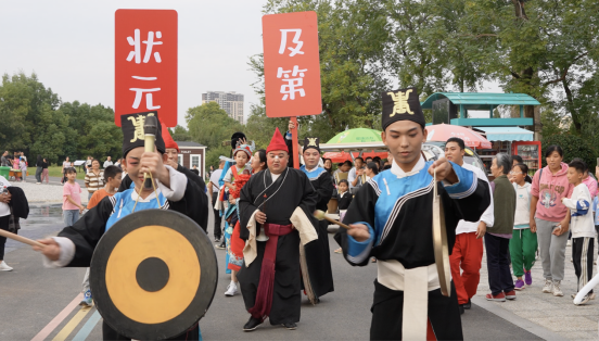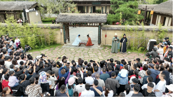 諸葛亮、劉備、張飛、關(guān)羽等幾十位三國人物“穿越而來”;電視里的捶丸、拋繡球招親、科考照進(jìn)現(xiàn)實(shí)?!秳淦迳纭贰ⅰ鄂跸s燈謎鋪》、《草廬對》、《諸葛斗志堂》、《良辰吉日》、《狀元及第》等真人NPC互動游戲,花樣繁多、玩法新奇。在園區(qū)體驗(yàn)一把古代高爾夫、考上一回狀元、接上個(gè)繡球,三國人物與游客一起互動對話,氛圍感拉滿,一鍵穿越回古代。