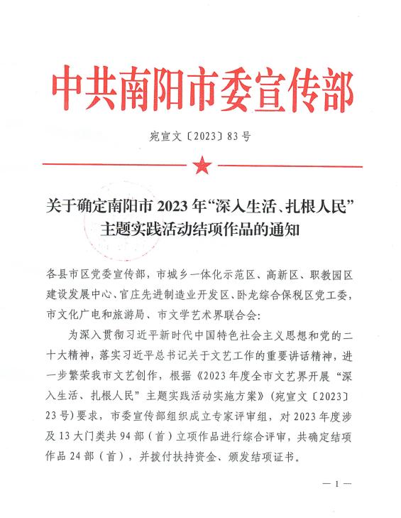 中共南陽市委宣傳部舉辦的“南陽市2023年深入生活、扎根人民主題實(shí)踐活動評選結(jié)束,由市文聯(lián)推薦,南陽投資集團(tuán)城投三國城投資有限公司策劃創(chuàng)作的大型漢風(fēng)迎賓歌舞《大美南陽.一個值得三顧的地方》被評為“結(jié)項(xiàng)”作品。