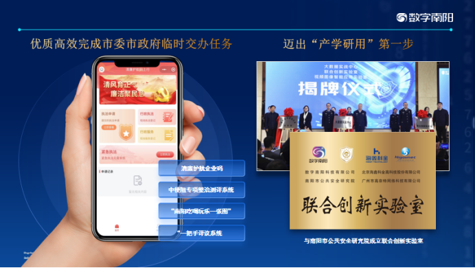 公司與南陽市公共安全研究院成立聯(lián)合創(chuàng)新實(shí)驗(yàn)室,研發(fā)出“網(wǎng)約房治安管理平臺”等5個(gè)應(yīng)用系統(tǒng),先后在公安部和省廳獲獎(jiǎng),并在南陽市第二屆“智慧警務(wù)”論壇上成功推介。
