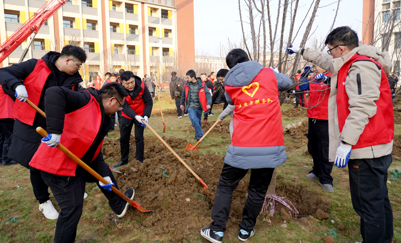 添下一抹新綠,播種一份希望。植樹現(xiàn)場,黨員同志們齊心協(xié)力、分工協(xié)作、熱情高漲,或兩人一組,或三五合作,放苗、扶正、培土、壓實,銜接有序,配合默契,呈現(xiàn)出一派熱火朝天的景象。經(jīng)過大家的共同努力,一排排新栽植的樹苗迎風(fēng)挺立,為市一中新校區(qū)增添了一抹新“綠”,成為一道亮麗的風(fēng)景線。