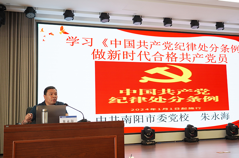為深入學(xué)習(xí)貫徹習(xí)近平總書記關(guān)于黨紀(jì)學(xué)習(xí)教育的重要講話和重要指示批示精神,加強(qiáng)黨的紀(jì)律建設(shè),扎實(shí)推動(dòng)黨紀(jì)學(xué)習(xí)教育走深走實(shí)。5月28日,南陽(yáng)投資集團(tuán)舉辦黨紀(jì)學(xué)習(xí)教育專題培訓(xùn)會(huì),邀請(qǐng)市委黨校黨的建設(shè)教研室副主任朱永海作專題輔導(dǎo)。集團(tuán)黨委書記、董事長(zhǎng)余永海,市紀(jì)委監(jiān)委駐市管國(guó)有企業(yè)第一紀(jì)檢監(jiān)察組組長(zhǎng)馬馳出席會(huì)議,集團(tuán)黨委副書記、監(jiān)事會(huì)主席韓玉奇主持會(huì)議。