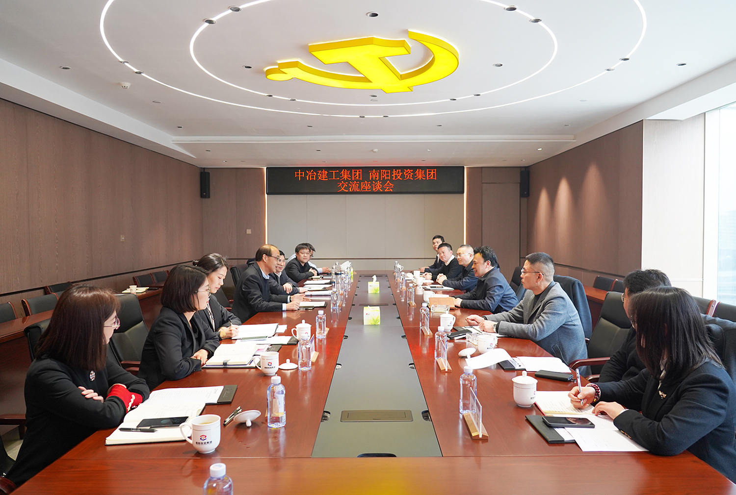 中冶建工集團(tuán)河南公司總經(jīng)理陳代川,中冶建工集團(tuán)投資管理公司總經(jīng)理毛紅明,中冶建工集團(tuán)海外工程分公司總經(jīng)理吳斌,南陽投資集團(tuán)黨委副書記、監(jiān)事會主席韓玉奇,南陽投資集團(tuán)黨委委員、副總經(jīng)理楊濤參加座談。