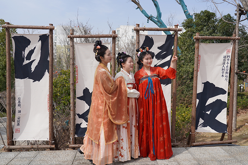 廣袖翩翩,古風(fēng)悠悠。大家挑選了喜愛的傳統(tǒng)服飾,畫上了精致美麗的妝容,從職場精英無縫切換為古典仕女,舉手投足盡展古韻美感。從復(fù)原“唐代仕女俑”到“明朝公主”、從漢服到少數(shù)民族服飾,大家懷揣著對傳統(tǒng)文化的熱愛,悠然徜徉于臥龍崗文化園,展示著傳統(tǒng)文化的禮儀之美、儀態(tài)之美、情景之美,成為一道亮麗的風(fēng)景線。