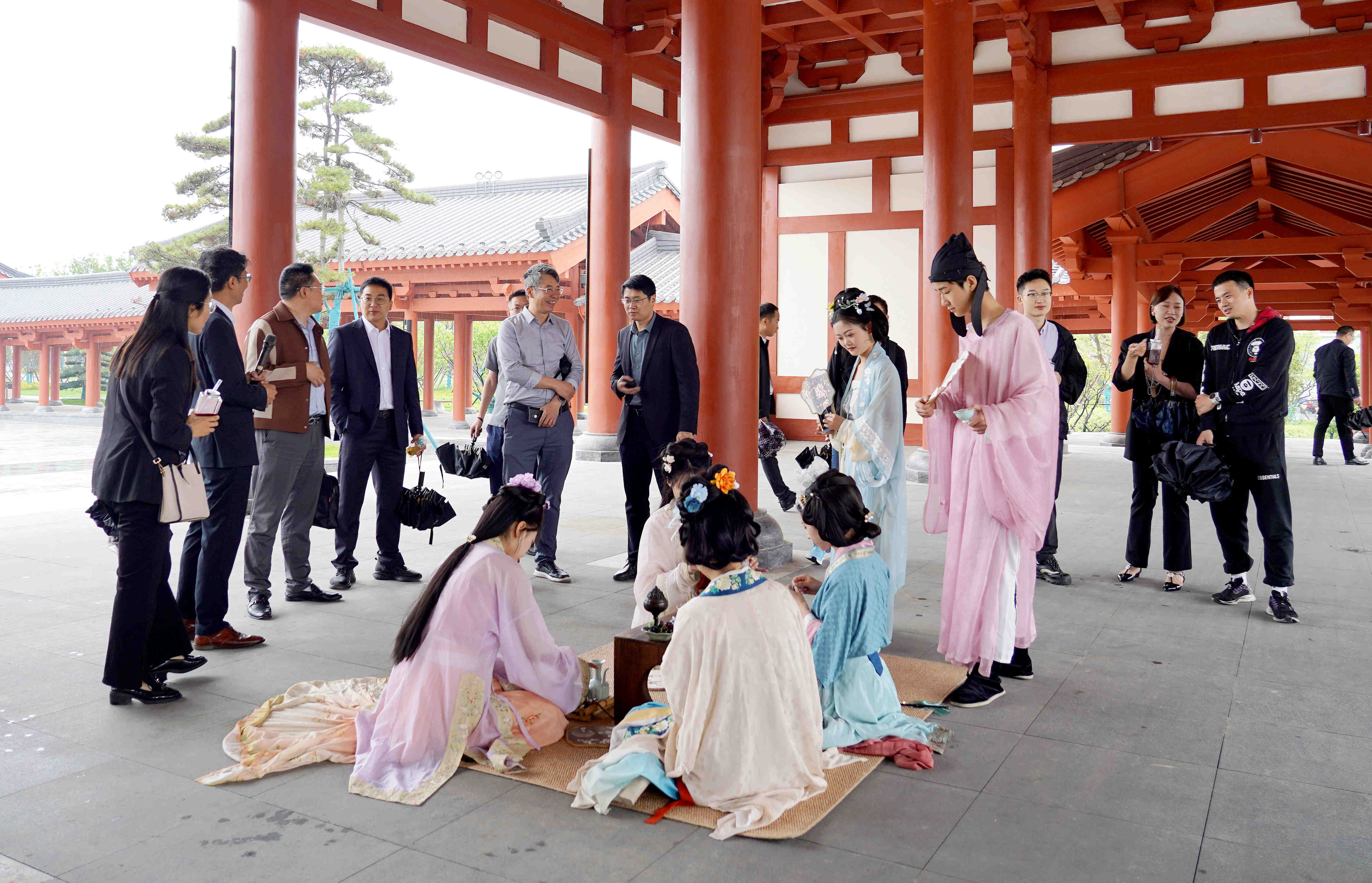 考察團(tuán)首先來到醫(yī)圣文化園,在講解員帶領(lǐng)下參觀了張仲景博物院,深入了解了張仲景生平和對(duì)中醫(yī)藥傳承發(fā)展做出的卓越貢獻(xiàn)以及醫(yī)圣文化園項(xiàng)目的建設(shè)與規(guī)劃情況,同時(shí)品嘗了藥食同源的養(yǎng)生飲品“仲景引子”,并就道地藥材產(chǎn)業(yè)現(xiàn)狀、中醫(yī)藥產(chǎn)業(yè)孵化、傳統(tǒng)中醫(yī)藥現(xiàn)代化等問題進(jìn)行了交流探討??疾靾F(tuán)表示,南陽作為中醫(yī)藥文化的重要發(fā)祥地和中醫(yī)藥大市,在傳承弘揚(yáng)醫(yī)圣文化、創(chuàng)新發(fā)展中醫(yī)藥事業(yè)上作出的努力以及取得的成績(jī)令人贊嘆,醫(yī)圣文化園項(xiàng)目將古城、醫(yī)圣和現(xiàn)代南陽結(jié)合為一體,以文化促進(jìn)產(chǎn)業(yè)發(fā)展,以產(chǎn)業(yè)反哺文化傳承,是南陽中醫(yī)藥傳承精華、守正創(chuàng)新的生動(dòng)實(shí)踐,也讓中華文明瑰寶煥發(fā)出新的光彩。