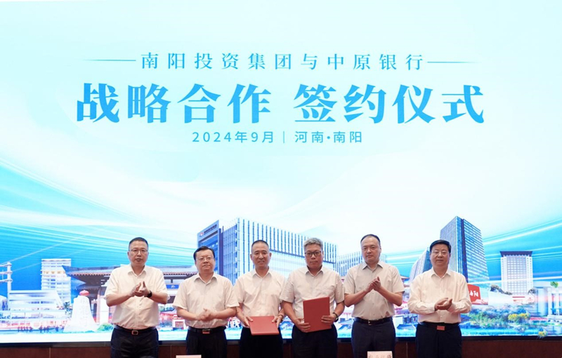 中原銀行總行董事會秘書潘文堯、中原銀行南陽市分行行長趙海軍、南陽投資集團黨委委員、副總經(jīng)理周雷出席簽約儀式。中原銀行南陽分行相關(guān)領(lǐng)導,南陽投資集團黨委班子領(lǐng)導參加簽約儀式。