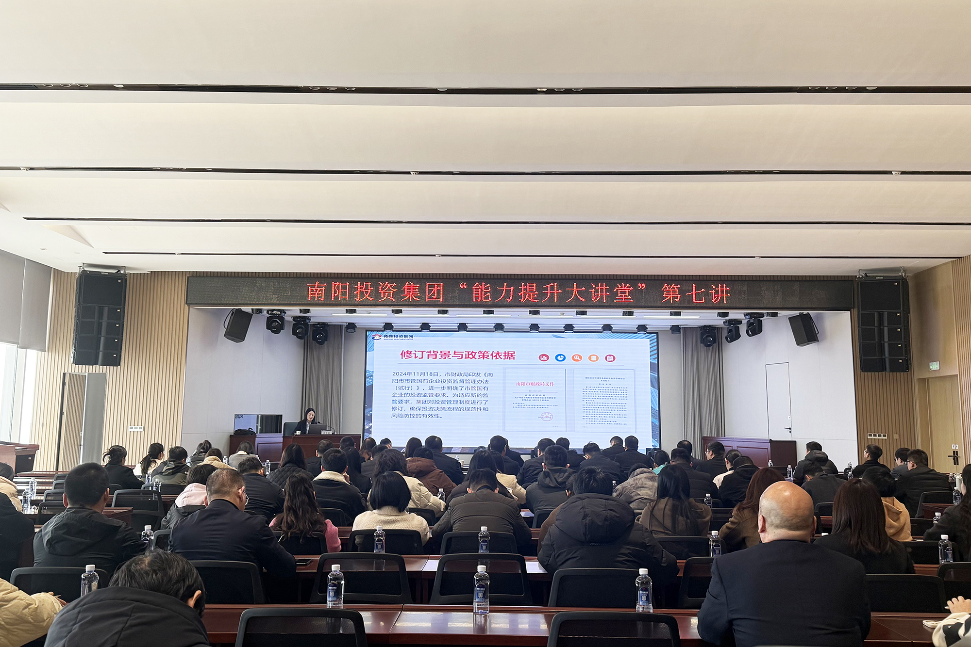 2月27日,南陽(yáng)投資集團(tuán)組織開(kāi)展“能力提升大講堂”第七講投資管理專題培訓(xùn),本次培訓(xùn)聚焦集團(tuán)投資管理制度體系,通過(guò)系統(tǒng)化解讀和實(shí)務(wù)指導(dǎo),著力提升投資決策規(guī)范化和風(fēng)險(xiǎn)防控水平。集團(tuán)中層干部、子公司負(fù)責(zé)人及相關(guān)業(yè)務(wù)骨干共計(jì)80余人參加。