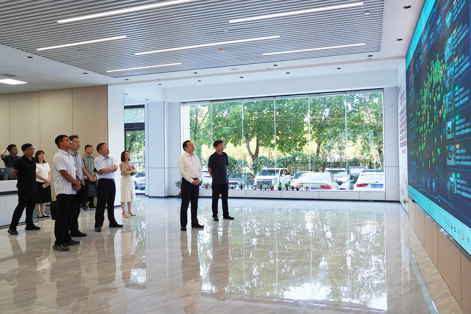在南陽智慧停車管理指揮中心,張軒一行詳細(xì)了解智慧停車平臺的大數(shù)據(jù)展示、路外停車管理、誘導(dǎo)服務(wù)、充電樁整合等功能模塊的運(yùn)行機(jī)制。工作人員現(xiàn)場演示了平臺如何實(shí)現(xiàn)停車場及車位數(shù)據(jù)接入、依據(jù)車位使用狀況進(jìn)行動態(tài)引導(dǎo)等核心功能,并介紹了平臺在整合全市停車資源、提升車位利用率、緩解城市“停車難”問題中的實(shí)際應(yīng)用成效。